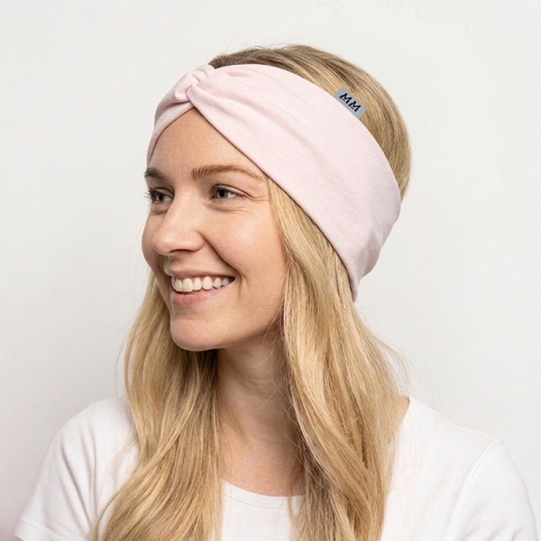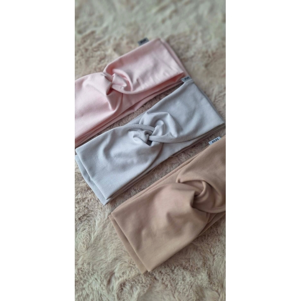 A stylish and comfortable twisted headband, perfect for spring and autumn. The light pink tone creates a delicate and feminine look.
