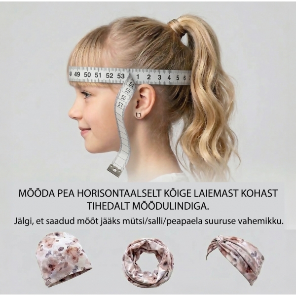 Choose the size according to your head circumference. Measure around your head horizontally at the widest point, making sure the measuring tape sits snugly. Ensure that the measurement falls within the product’s size range. For example: if your head circumference is 54 cm, size 54–56 will fit, but 52–54 may also work. Choose depending on whether you prefer the headband to fit more snugly or more loosely.