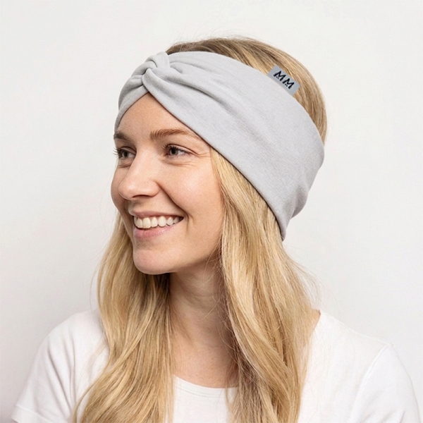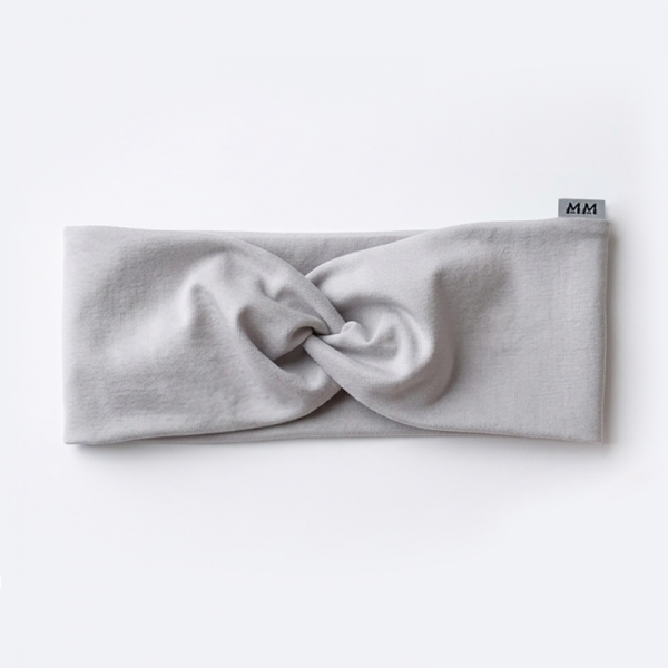 A stylish and comfortable twisted headband, perfect for spring, summer and autumn. The light grey tone creates a soft and feminine look.